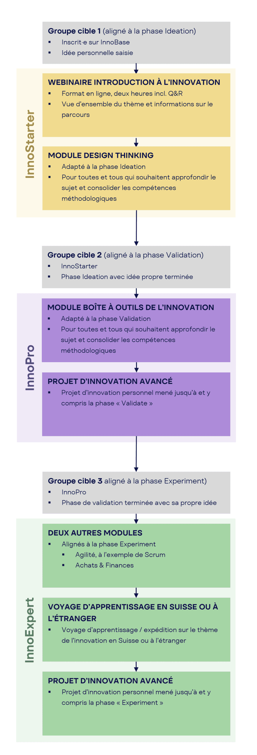 L’ensemble du Parcours Innovation se présente comme suit :
