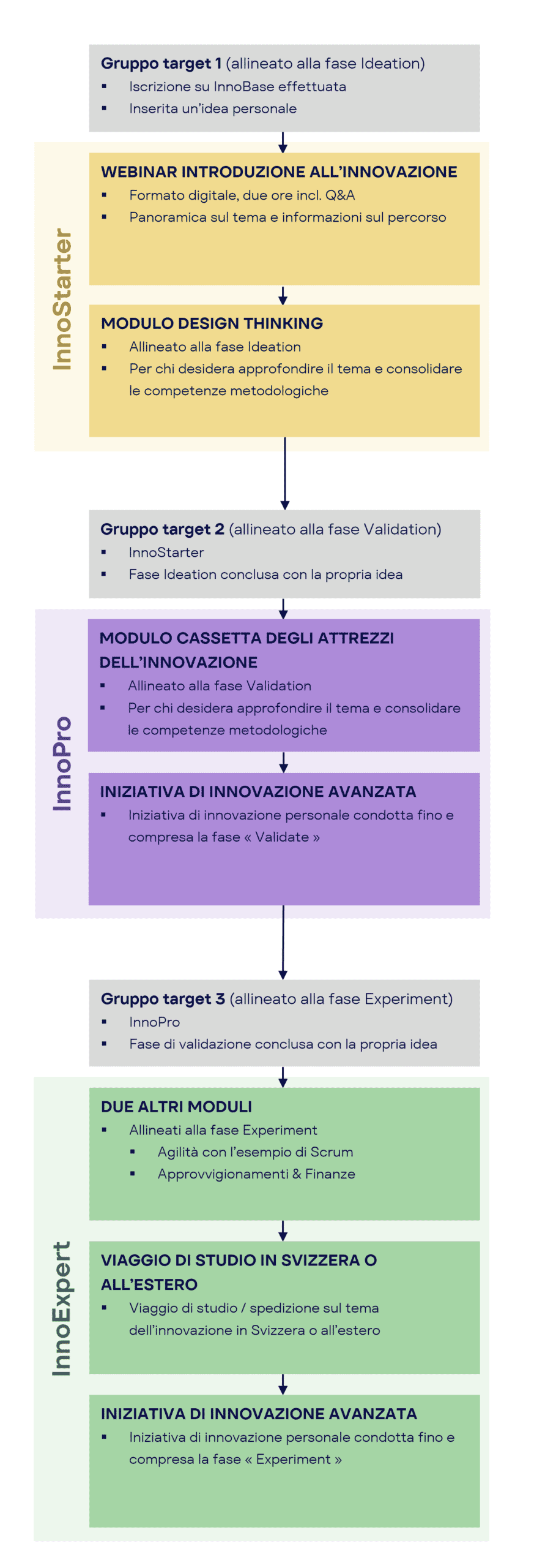 Il percorso è aperto a tutto il personale del Gruppo Difesa (Gruppo V). Le persone registrate su InnoBase vengono invitate ai singoli moduli in base alle loro attività.